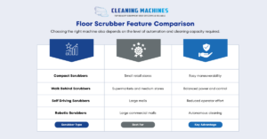 Different retail environments require different types of scrubbers. The following comparison highlights which machines are suitable for various retail spaces.