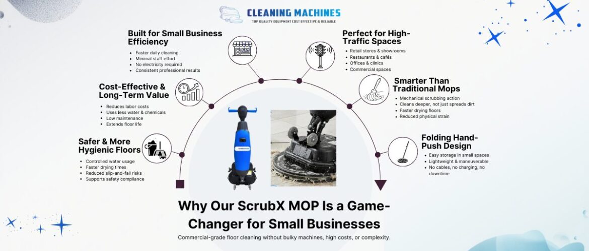 Keeping floors clean is one of the most visible yet underestimated aspects of running a small business. Customers may not comment on clean floors, but they always notice dirty ones. From retail shops and cafés to offices and clinics, flooring plays a major role in safety, hygiene, and brand perception. That is exactly where our ScrubX MOP stands out as a game-changer for small businesses. Unlike traditional mopping methods that are
