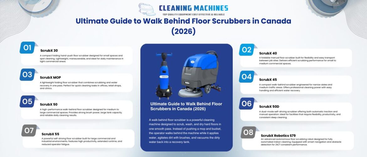 Are you managing a business or facility in Ontario and looking for efficient cleaning machines? Whether you’re in Toronto, Mississauga, Brampton, or Ottawa, maintaining a clean and professional environment is essential for business reputation and safety. At CleaningMachines.ca, we provide top-quality cleaning equipment that helps your business shine—literally. In this blog, we’ll walk you through the best equipment options to keep your floors spotless and your carpets fresh. 1. Walk Behind Floor Scrubbers – Perfect for Tight Spaces If you operate a