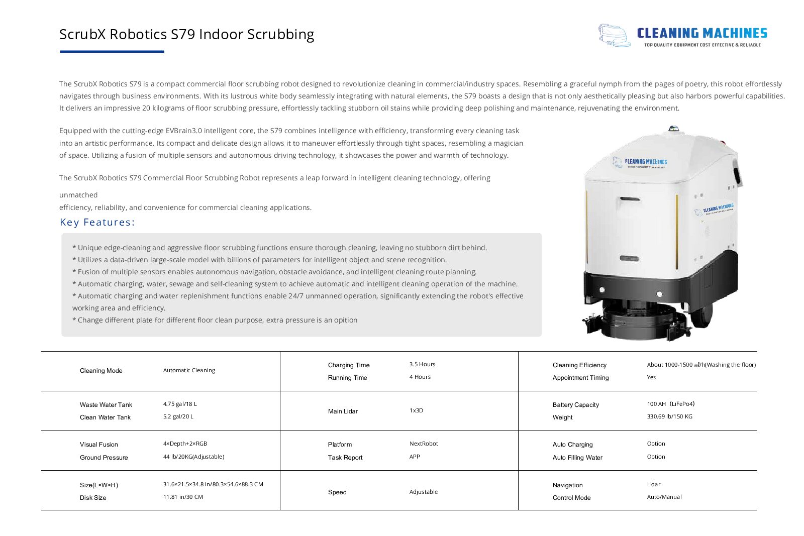 The ScrubX Robotics S79 represents a major leap forward in commercial cleaning automation—combining intelligence, reliability, and convenience into one powerful cleaning machine, exclusively offered by Cleaning Machines.