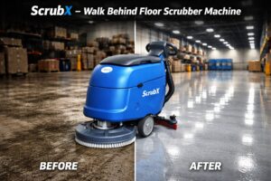 For compact areas, the ScrubX 30 – Folding Hand Push Floor Scrubber and ScrubX 40 – Foldable Hand Push Scrubber are ideal. They are lightweight, space-saving, and perfect for offices, clinics, and small retail stores.