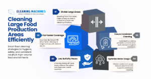 Machines such as the ScrubX 55 – Self-Driving Floor Scrubber are commonly used in large food production areas to maintain consistent cleanliness across wide surfaces. These machines reduce cleaning time while ensuring uniform results.